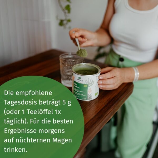 Die empfohlene Tagesdosis beträgt 5 g (oder 1 Teelöffel 1x täglich). Für die besten Ergebnisse morgens auf nüchternen Magen trinken. Für besseren Geschmack können Sie es in frisch gepressten Zitronen- oder Orangensaft oder in Wasser mischen.