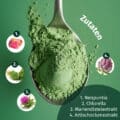 Neopuntia™, Chlorella-Pulver, natürliches Orangenaroma, Mariendistelextrakt, Artischockenextrakt, Süßungsmittel Steviolglykoside.