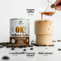 Mischen Sie 10 g (1 Esslöffel) OK!FatBurn Coffee-Mischung mit 150 ml heißem Wasser oder (pflanzlicher) Milch.